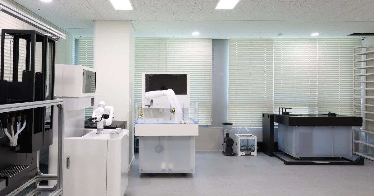 대표적인 공간이 바로 로봇랩인데요. 단순히 기술 데모를 위한 공간이 아니라, 실제 제품 개발과 테스트까지 가능한 실험 환경으로 설계됐습니다. 바리스타 로봇을 위한 급배수 설비, 장비 기반 테스트 설비까지 모두 포함되어 있어, 실질적인 연구개발이 가능한 공간으로 완성됐죠.