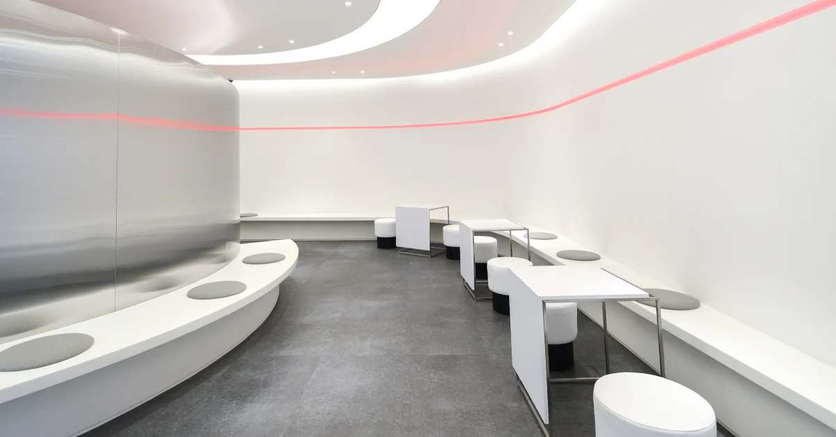 메탈 소재와 곡선 구조, 그리고 복도 라인을 따라 배치된 조명 등은 마치 가상 공간을 연상시키는 분위기를 조성하며, 방문객에게도 브랜드 아이덴티티를 직관적으로 전달합니다. 개방형 업무 공간과 별도 구성된 라운지, 콘텐츠 체험존 등은 일하는 방식과 브랜드 경험을 함께 고려한 설계로, 올림플래닛의 조직 문화를 효과적으로 담아낸 사례입니다.